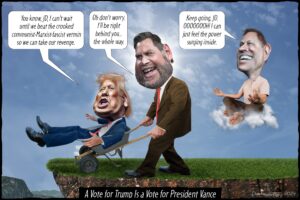 Thiels grootste hobby is echter de politiek. In de duistere onheilsprofeet Curtis Yarvin (zie het verhaal van Roel van Duijn over Yarvin) vond hij zijn favoriete huisfilosoof en die is niet alleen een pleitbezorger van een dictator-koning als alternatief voor het westerse democratische model, hij ziet zelfs de hele Europese Verlichting als een historisch drama. Openlijk verkondigt Thiel dat in zijn ogen democratie en vrijheid niet samen kunnen gaan. Om de daad bij het woord te voegen investeerde hij miljoenen in de creatie van microstaten op drijvende kunstmatige eilanden waar naar hartenlust met alternatieve regeringsvormen kan worden geëxperimenteerd. Tegelijkertijd is Thiel een gulle sponsor van Trump, terwijl diens vicepresident J.D. Vance een oud-werknemer is van Thiel Investments. Thiel stak miljoenen in Vance’s verkiezingscampagne voor de senaat in Ohio en insiders zien de vicepresident dan ook als de politieke buikspreekpop van Peter Thiel.